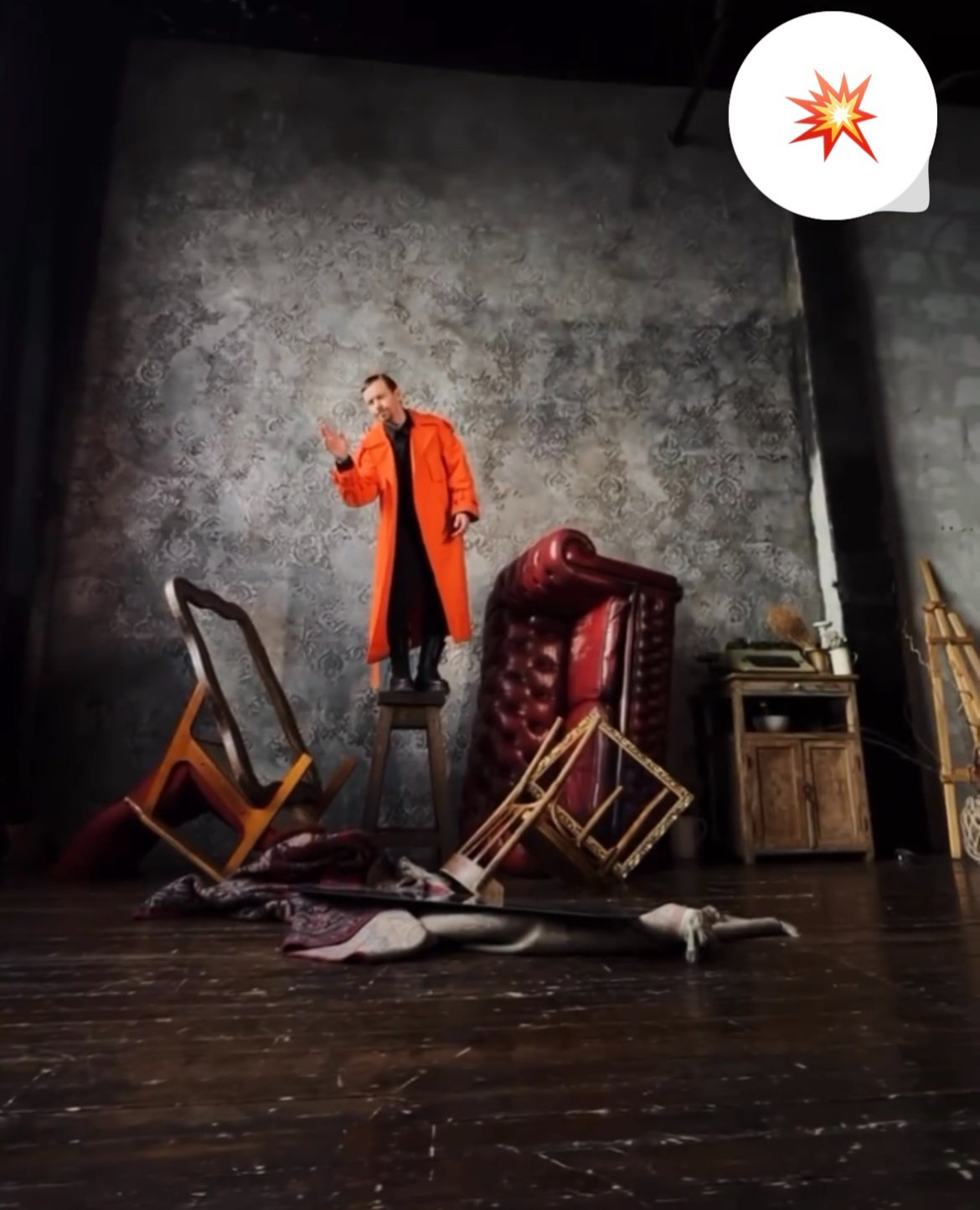 Сцена 10 — В гардеробной комнате или в гостинной на фоне бардака надевание костюма